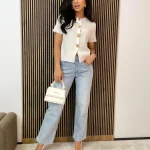 Fason szwedów z prostą, lekko rozszerzaną nogawką optycznie wydłuża nogi i nadaje sylwetce lekkości. Jasny kolor sprawia, że spodnie są idealne na cieplejsze dni i świetnie wpisują się w wiosenno-letnie trendy.