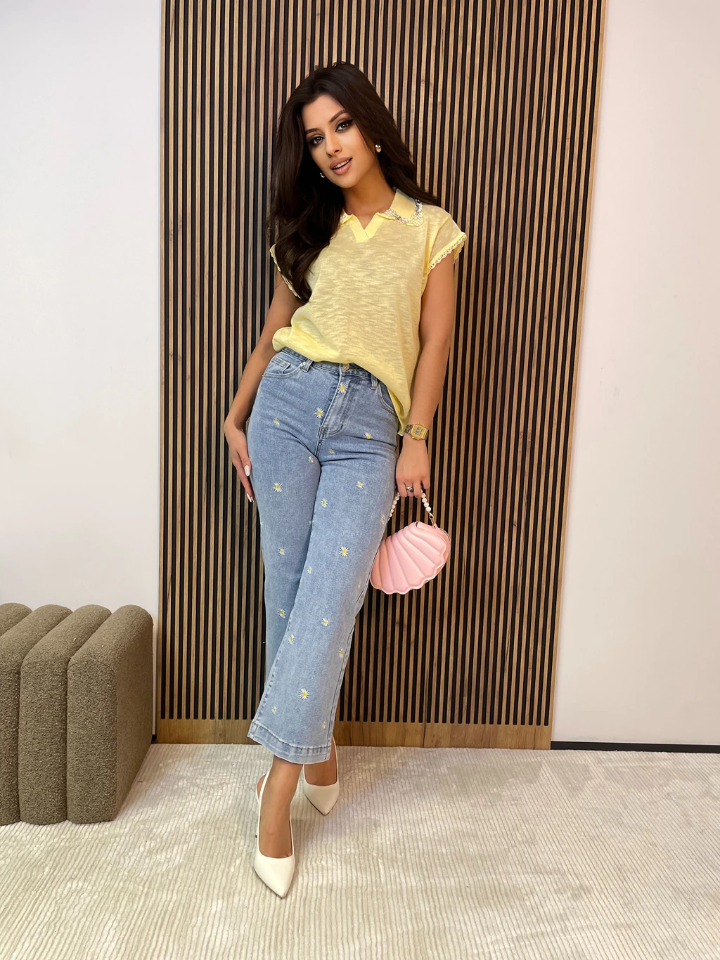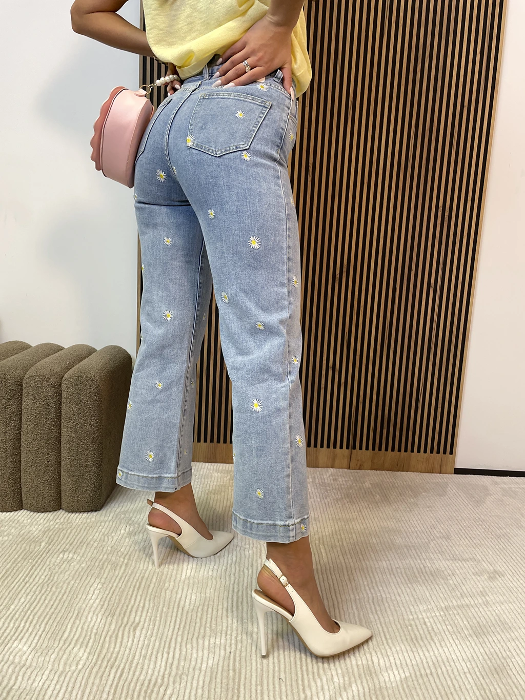 Spodnie szwedy w stokrotki to połączenie klasycznego kroju z dziewczęcym, świeżym wzorem. Szeroka nogawka pięknie wydłuża nogi, a delikatny print w stokrotki dodaje stylizacji lekkości i subtelnego uroku. To idealny model na wiosnę, lato oraz słoneczne dni przez cały rok.