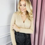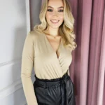 Body z długim rękawem to idealna propozycja dla każdej kobiety, która chce poczuć się wygodnie i stylowo. Kopertowy dekolt dodaje mu elegancji i subtelnie podkreśla kobiece kształty. Wykonane z gładkiego materiału, idealnie przylega do ciała, zapewniając komfort noszenia. Dodatkowo, rozciągliwe właściwości sprawiają, że body świetnie dopasowuje się do sylwetki. To doskonały wybór zarówno na co dzień, jak i na specjalne okazje, gdy chcesz czuć się nie tylko wygodnie, ale również stylowo.