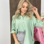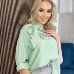 Nasza koszula to idealny wybór dla każdej kobiety, która lubi wyraziste i niebanalne wzory. Wykonana z wysokiej jakości materiału, ozdobiona trójwymiarowymi kwiatami, ma przyciągający uwagę kołnierzyk oraz modny oversize cut. Jej tył jest nieco dłuższy od przodu, co nadaje jej nowoczesnego charakteru. Wygodna i stylowa – ta koszula z pewnością stanie się ulubionym elementem Twojej garderoby.