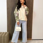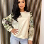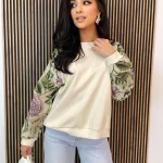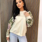 Neutralny, beżowy kolor sprawia, że bluza jest niezwykle uniwersalna i łatwa do łączenia z innymi elementami garderoby. Kwiatowe rękawy wprowadzają lekkość i świeżość, nadając całości kobiecego i modnego wyglądu.
