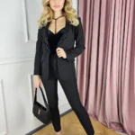 Nasz produkt to elegancki i zjawiskowy garnitur składający się z marynarki i spodni. Spodnie są lekko luźne, co gwarantuje wygodę noszenia, a dodatkowo posiadają gumkę w pasie dla jeszcze większego komfortu. Marynarka natomiast wyróżnia się cekinowymi mankietami, które nadają jej niezwykłego blasku i atrakcyjności. Dodatkowo, usztywnione ramiona gwarantują idealne dopasowanie, podkreślając sylwetkę. To idealny wybór dla osób poszukujących modnej i efektownej oprawy na specjalne okazje.