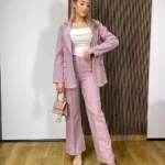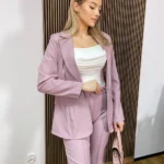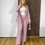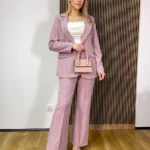 Garnitur z dłuższą marynarką zapinaną na guzik to elegancka propozycja, która łączy klasyczny szyk z nowoczesnym akcentem. Marynarka o przedłużonym fasonie z usztywnionymi ramionami nadaje sylwetce wyrazisty kształt, podkreślając jej elegancję. Guzik dodaje jej subtelnej formy, a długie klapy dopełniają całość, tworząc ponadczasowy look. Spodnie w szerokim kroju typu szwedy z gumką w pasie gwarantują wygodę, a ich luźniejszy fason wprowadza modowy luz. Dzięki gumce w pasie, spodnie świetnie dopasowują się do sylwetki, zapewniając komfort i swobodę ruchów. Ten garnitur to idealna opcja zarówno na formalne, jak i bardziej casualowe okazje, łącząc elegancję z nowoczesnym podejściem do mody. Pierz w 30 stopniach, nie wybielaj, nie używaj detergentów, prasuj w niskiej temperaturze i nie susz w suszarce bębnowej, prać wewnętrzną stroną, wieszać do góry nogami, . Wyprodukowano we Włoszech.