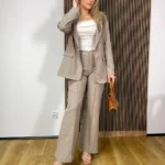 Garnitur SPRING marynarka i szerokie spodnie beżowy