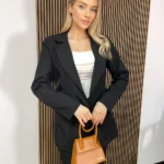 Garnitur z dłuższą marynarką zapinaną na guzik to elegancka propozycja, która łączy klasyczny szyk z nowoczesnym akcentem. Marynarka o przedłużonym fasonie z usztywnionymi ramionami nadaje sylwetce wyrazisty kształt, podkreślając jej elegancję. Guzik dodaje jej subtelnej formy, a długie klapy dopełniają całość, tworząc ponadczasowy look. Spodnie w szerokim kroju typu szwedy z gumką w pasie gwarantują wygodę, a ich luźniejszy fason wprowadza modowy luz. Dzięki gumce w pasie, spodnie świetnie dopasowują się do sylwetki, zapewniając komfort i swobodę ruchów. Ten garnitur to idealna opcja zarówno na formalne, jak i bardziej casualowe okazje, łącząc elegancję z nowoczesnym podejściem do mody. Pierz w 30 stopniach, nie wybielaj, nie używaj detergentów, prasuj w niskiej temperaturze i nie susz w suszarce bębnowej, prać wewnętrzną stroną, wieszać do góry nogami, . Wyprodukowano we Włoszech.