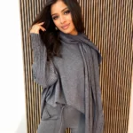 Napisz pierwszą opinię o „Komplet damski AMARI sweterek, szerokie spodnie + szalik , szary”