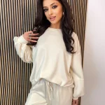 Stylowy dres Azara to idealne połączenie wygody i nowoczesnego designu. Komplet składa się z komfortowej bluzy oraz szerokich spodni, które doskonale układają się na sylwetce i zapewniają pełną swobodę ruchów. Wykonany z bardzo miękkiego materiału, dres gwarantuje wyjątkowy komfort noszenia przez cały dzień – zarówno w domu, jak i na co dzień poza nim.