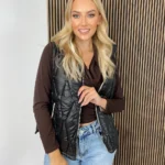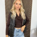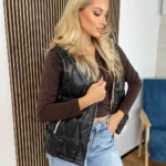 Przedstawiamy nasz elegancki i stylowy krótki czarny bezrękawnik, sięgający do bioder. To doskonały wybór na chłodniejsze dni, który łączy komfort z nowoczesnym wyglądem. Idealny do noszenia na co dzień, sprawdzi się w różnorodnych stylizacjach, dodając im subtelnej elegancji.