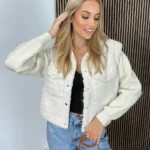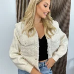 Ta kurtka sweterkowa z barankiem to idealne połączenie stylu i komfortu. Zewnątrz wyłożona miękkim, ciepłym materiałem typu „baranek” zapewnia doskonałą izolację przed chłodem, dzięki czemu świetnie sprawdzi się w chłodniejsze dni. Sweterkowe rękawy dodają całości przytulnego i casualowego charakteru, a jednocześnie umożliwiają swobodę ruchów. Kurtka jest zapinana na wygodne napy, co ułatwia szybkie zakładanie i zdejmowanie.