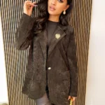 Model zapinany na pojedynczy guzik podkreśla talię i świetnie prezentuje się zarówno w casualowych, jak i bardziej eleganckich stylizacjach. Szeroki krój i lekko obniżona linia ramion dodają jej modnego, swobodnego wyglądu.