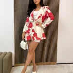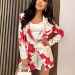 Stylowa marynarka damska o luźnym kroju w efektowny wzór dużych kwiatów to idealna propozycja dla kobiet, które lubią łączyć elegancję z modnym, wyrazistym stylem. Model zapinany na jeden guzik pięknie układa się na sylwetce i nadaje stylizacji lekkości.