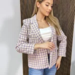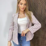 Marynarka w kratę zapinana na dwa guziki to ponadczasowy element, który łączy klasyczny styl z nowoczesnym akcentem. Wykonana z wysokiej jakości materiału, zapewnia elegancki wygląd, który świetnie sprawdzi się zarówno w formalnych, jak i bardziej casualowych stylizacjach. Dwa guziki dodają jej szyku i harmonii, a krata w subtelnych kolorach nadaje marynarce charakteru. Doskonale komponuje się z dopasowanymi spodniami, jeansami czy spódnicą, tworząc zrównoważony i modny zestaw na każdą okazję – od spotkań biznesowych po wieczorne wyjścia. Pierz w 30 stopniach, nie wybielaj, nie używaj detergentów, prasuj w niskiej temperaturze i nie susz w suszarce bębnowej. Wyprodukowano we Włoszech.