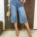 Klasyczne kuloty z jasnego jeansu to ponadczasowy element garderoby, który łączy wygodę z modnym, minimalistycznym stylem. Szeroka nogawka o długości 7/8 zapewnia swobodę ruchów i nadaje sylwetce lekkości, a jasny odcień denimu doskonale wpisuje się w wiosenno-letnie stylizacje.