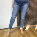 Te eleganckie spodnie w rozmiarze plus size to idealny wybór dla osób szukających komfortu i klasyki w jednym. Wykonane z wysokiej jakości materiału, charakteryzują się ciemnym niebieskim kolorem, który pasuje do wielu stylizacji, zarówno codziennych, jak i bardziej formalnych. Wysoki stan zapewnia wygodę i optycznie wysmukla sylwetkę, a klasyczny krój bez dziur gwarantuje ponadczasowy wygląd. Dzięki elastycznemu materiałowi, spodnie idealnie dopasowują się do ciała, zapewniając swobodę ruchów przez cały dzień. Doskonały wybór na każdą okazję!Pierz w 30 stopniach, nie wybielaj, nie używaj detergentów, prasuj w niskiej temperaturze i nie susz w suszarce bębnowej. Wyprodukowano w Chinach.