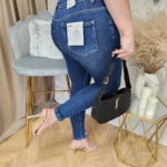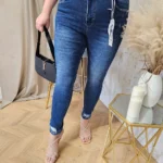 Spodnie plus size to idealny wybór dla kobiet, które cenią sobie wygodę i styl. Wykonane z miękkiego i rozciągliwego jeansu, doskonale dopasowują się do sylwetki, zapewniając komfort noszenia przez cały dzień. Ich ciemny kolor nadaje im eleganckiego wyglądu, natomiast lekkie drapki i strzępiona nogawka dodają im charakteru i oryginalności. Te spodnie to doskonała propozycja dla kobiet, które chcą poczuć się pewnie i stylowo, nie rezygnując przy tym z wygody i komfortu.