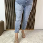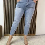 Jasne jeansy mom fit w rozmiarze plus size to ponadczasowy model, który łączy wygodę z modnym, klasycznym krojem. Spodnie posiadają wysoki stan, który pięknie podkreśla talię oraz zapewnia komfort noszenia przez cały dzień.