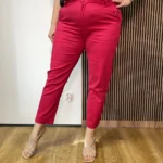 Spodnie z nogawką 7/8 to idealny wybór dla osób ceniących sobie wygodę i komfort. Wykonane z rozciągliwego i miękkiego materiału, doskonale dopasowują się do sylwetki, zapewniając swobodę ruchów i wygodę noszenia przez cały dzień. Nogawka 7/8 dodaje spodniom lekkości i nowoczesnego wyglądu, idealnie pasując do różnych stylizacji. Doskonałe zarówno na co dzień, jak i na bardziej formalne okazje. Dzięki nim poczujesz się wygodnie i stylowo jednocześnie.