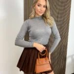 Stylowa i uniwersalna, czekoladowa spódnica plisowana to idealny wybór dla osób ceniących elegancję i wygodę. Wykonana z lekkiego materiału, pięknie układa się w ruchu, dodając sylwetce lekkości i wdzięku. Elastyczna gumka w pasie zapewnia idealne dopasowanie do talii, jednocześnie gwarantując pełen komfort noszenia przez cały dzień.