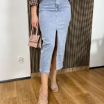 Klasyczna, a zarazem modna – ta jasna spódnica jeansowa midi to idealny wybór na wiosenne i letnie dni. Wykonana z wysokiej jakości denimu, łączy wygodę z ponadczasowym stylem. Jej długość midi i subtelny rozporek z przodu dodają lekkości i kobiecości, jednocześnie zapewniając swobodę ruchów. Spódnica świetnie komponuje się z t-shirtami, bluzkami czy topami, a także z eleganckimi lub sportowymi butami, co sprawia, że stworzysz zarówno casualowy, jak i bardziej elegancki look. Pranie na lewej stronie, prać w 30 stopniach, nie wybielać, suszyć w niskiej temperaturze, prasowanie w niskiej temperaturze, nie czyścić maszynowo, wyprodukowano w prc, producent Laulia