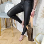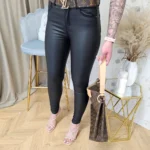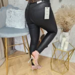 Spodnie z eko skóry to idealna propozycja dla osób ceniących sobie wygodę i styl. Wykonane z wysokiej jakości materiału, są miękkie w dotyku i bardzo elastyczne, co sprawia, że doskonale dopasowują się do sylwetki. Klasyczny kolor czarny sprawia, że spodnie są uniwersalne i łatwo można je zestawić z różnymi stylizacjami. Dodatkowo, ekologiczna skóra sprawia, że produkt jest przyjazny dla środowiska. Te spodnie to doskonała propozycja dla osób, które chcą wyglądać modnie, nie rezygnując przy tym z komfortu noszenia.