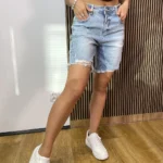 Spodenki jeansowe z małą ilością elastanu przed kolano to świetny wybór na casualowe, letnie dni. Wykonane z klasycznego denimu z dodatkiem elastanu, zapewniają wygodę i elastyczność, dopasowując się do sylwetki, ale zachowując swój luźny krój. Szarpane wykończenia na dole dodają im nieco rockowego charakteru, nadając stylu i pazura. Krój przed kolano sprawia, że są idealne na ciepłe dni, zapewniając komfort i swobodę ruchów. Te spodenki świetnie komponują się z t-shirtami, topami czy lekkimi koszulami, tworząc modną, codzienną stylizację.