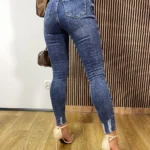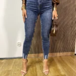 Postaw na klasykę z nutą charakteru! Te ciemne spodnie typu rurki ze strzępioną nogawką to modna propozycja dla kobiet ceniących wygodę i styl. Dopasowany krój podkreśla sylwetkę, a postrzępione wykończenie nogawek dodaje nowoczesnego, lekko rockowego akcentu.