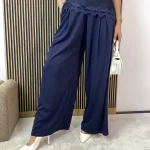 Klasyczne spodnie z wiskozy na gumce – szerokie nogawki i delikatne zakładki
