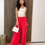 Napisz pierwszą opinię o „Spodnie damskie szerokie VIVIAN z wiskozy czerwone”