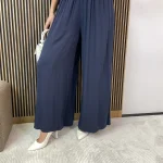 Klasyczne spodnie z wiskozy na gumce – szerokie nogawki i delikatne zakładki