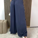 Eleganckie spodnie damskie z wiskozy to połączenie komfortu i ponadczasowego stylu. Model z szerokimi nogawkami pięknie układa się w ruchu, nadając sylwetce lekkości i swobody. Delikatne zakładki na biodrach subtelnie modelują figurę, a elastyczna gumka w pasie zapewnia idealne dopasowanie i wygodę przez cały dzień.