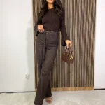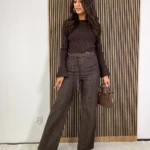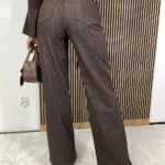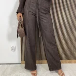 Szerokie spodnie w odcieniu głębokiej czekolady to must-have dla kobiet, które kochają styl z klasą. Rozszerzana nogawka pięknie wydłuża sylwetkę, a wysoki stan podkreśla talię, nadając stylizacji harmonijnych proporcji. Czekoladowy kolor to alternatywa dla klasycznej czerni – równie elegancki, ale cieplejszy i bardziej oryginalny.