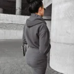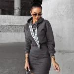 Sportowa sukienka z długim rękawem. Kaptur regulowany logowanym sznurkiem. Delikatnie oversiz’owa