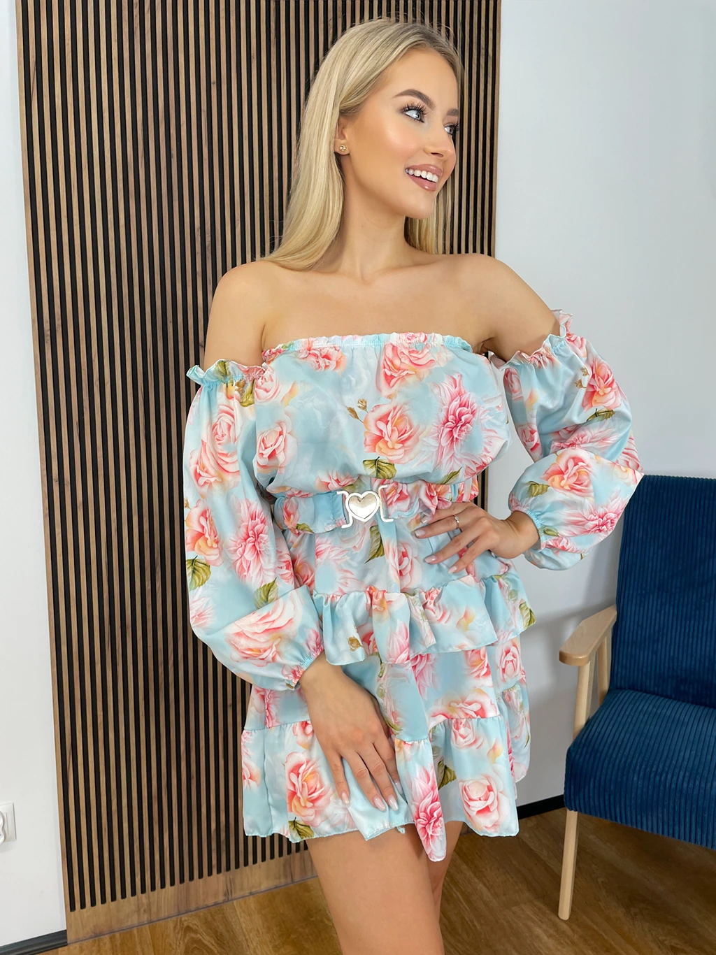 Ta sukienka midi to połączenie elegancji, komfortu i subtelnej zmysłowości. Marszczony przód dodaje sukience niepowtarzalnego charakteru, doskonale podkreślając talię i eksponując kobiecą sylwetkę. Luźna góra zapewnia wygodę, tworząc harmonijny kontrast z dopasowanym dołem sukienki, co sprawia, że całość wygląda lekko i swobodnie, a jednocześnie bardzo elegancko.