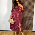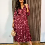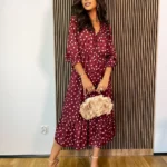 Ta sukienka midi to połączenie klasycznego kroju i subtelnej zmysłowości. Krótkie rękawy dodają lekkości i świeżości, idealnie komponując się z długą długością sukienki, która sprawia, że całość wygląda elegancko i kobieco. Zapinana na guziki, sukienka oferuje możliwość regulacji dekoltu i długości, co sprawia, że możesz dostosować ją do swojego stylu.