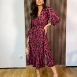 Ta sukienka midi to połączenie klasycznego kroju i subtelnej zmysłowości. Krótkie rękawy dodają lekkości i świeżości, idealnie komponując się z długą długością sukienki, która sprawia, że całość wygląda elegancko i kobieco. Zapinana na guziki, sukienka oferuje możliwość regulacji dekoltu i długości, co sprawia, że możesz dostosować ją do swojego stylu.