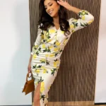 Długie rękawy idealnie pasują do wiosenno-letnich dni, zapewniając komfort bez uczucia przegrzania. Wzór w cytryny nadaje sukience świeżości i energetycznego charakteru, wprowadzając pozytywną aurę do każdej stylizacji. Świetnie sprawdzi się zarówno na co dzień, jak i na mniej formalne wyjścia.