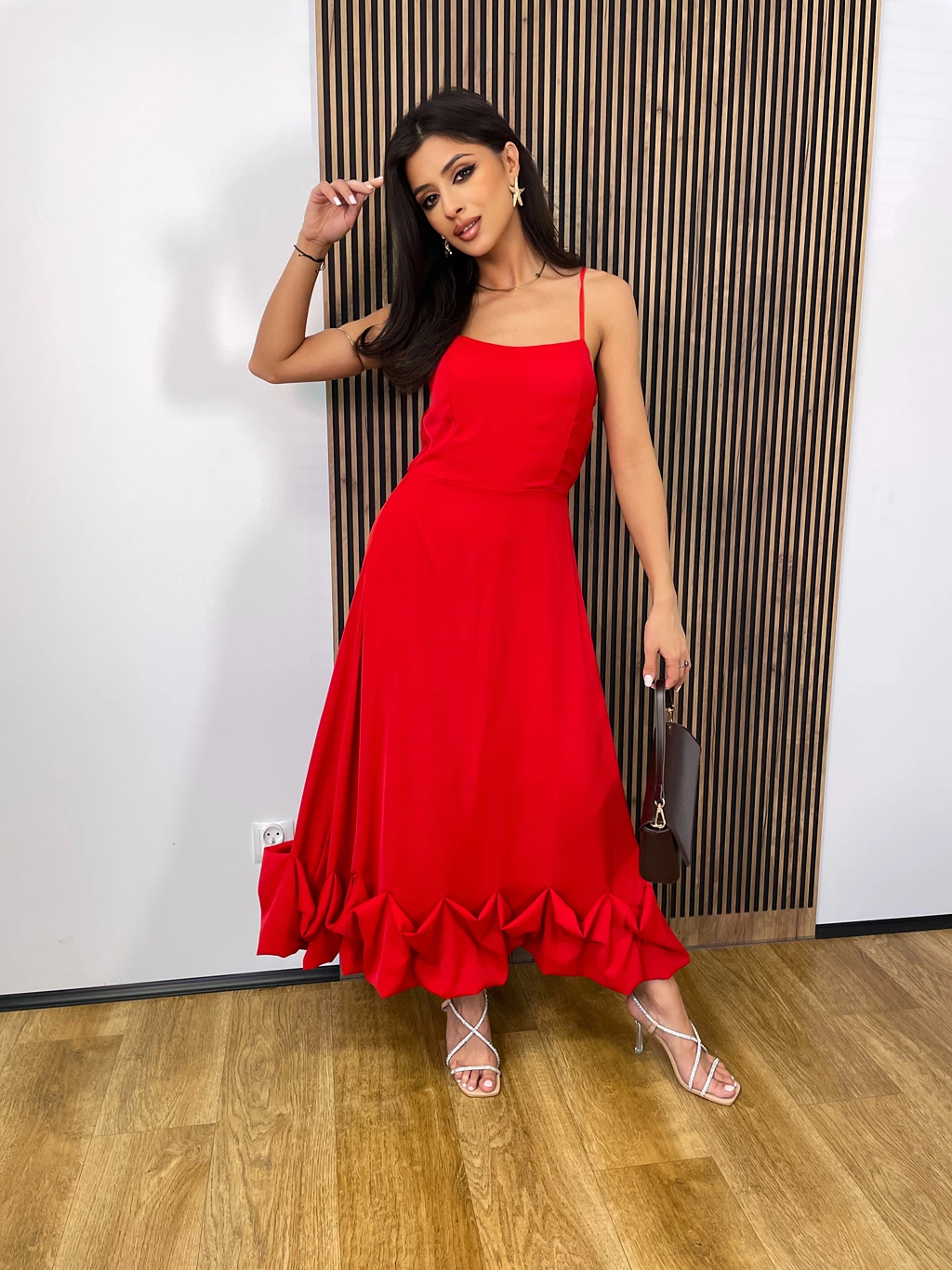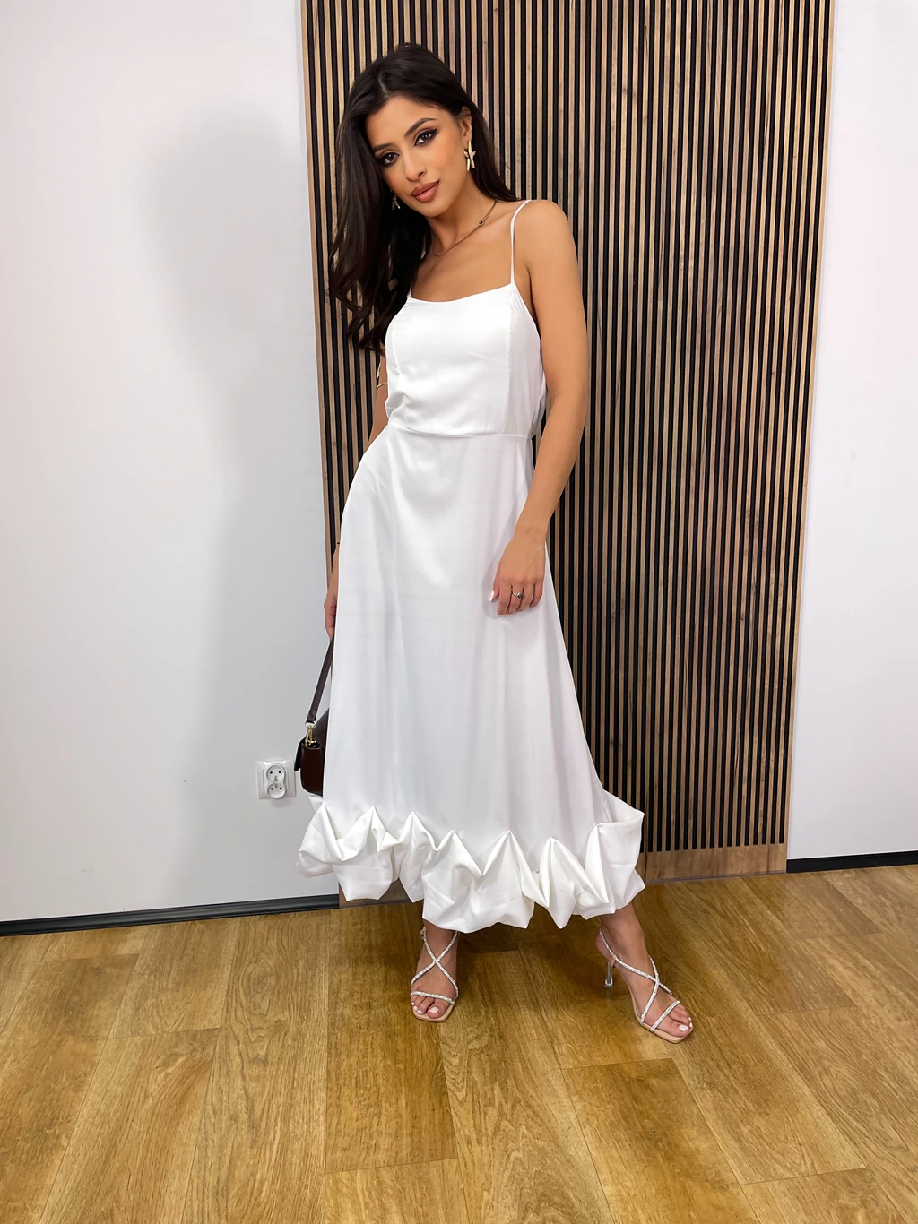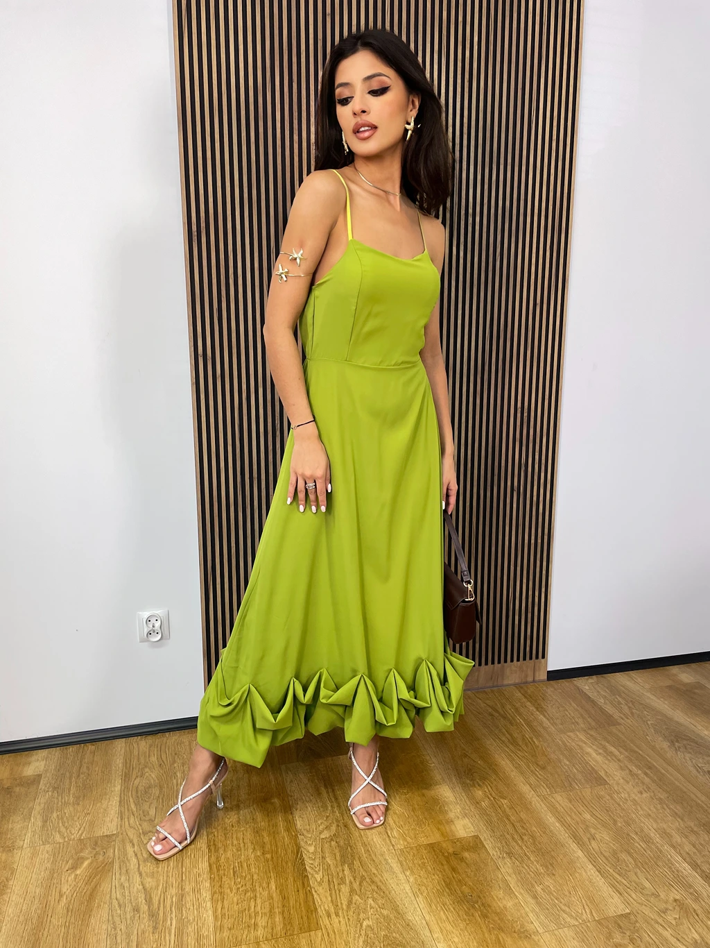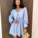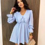 Sukienka z długim rękawem zakończonym ściągaczem i klasycznym kołnierzem to połączenie elegancji i codziennego komfortu. Lekko rozkloszowany fason pięknie układa się na sylwetce, podkreślając talię i nadając stylizacji kobiecej lekkości.