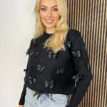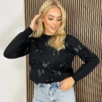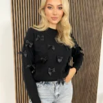 Ten miękki sweter z kokardkami to idealny wybór na chłodniejsze dni! Wykonany z rozciągającego materiału, zapewniającego doskonałe dopasowanie do sylwetki. Jest niezwykle przyjemny w dotyku i ciepły, dzięki czemu zapewni Ci komfort przez cały dzień. Dodatkowo ozdobione kokardkami dodają mu uroku i dziewczęcego charakteru. Ten sweter to must-have w garderobie każdej kobiety!