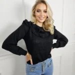 Moherowy sweterek to idealna propozycja dla osób ceniących sobie wygodę i styl. Wykonany z miękkiego materiału, posiada długi rękaw oraz delikatną falbankę, która dodaje mu lekkości i dziewczęcego uroku. Doskonały do noszenia na co dzień, idealnie sprawdzi się w chłodniejsze dni, zapewniając ciepło i komfort. Dzięki uniwersalnemu designowi, można go zestawić zarówno z jeansami, jak i spódnicą, tworząc różnorodne stylizacje.